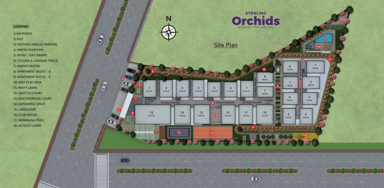 Experience premium living at Sterling Orchids, a thoughtfully designed gated community offering modern amenities and exceptional quality by SHPL. Comprising two elegant blocks, the community is home to 140 families, fostering a vibrant and comfortable lifestyle.