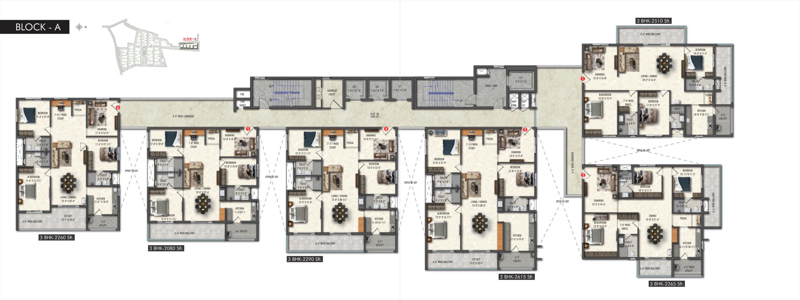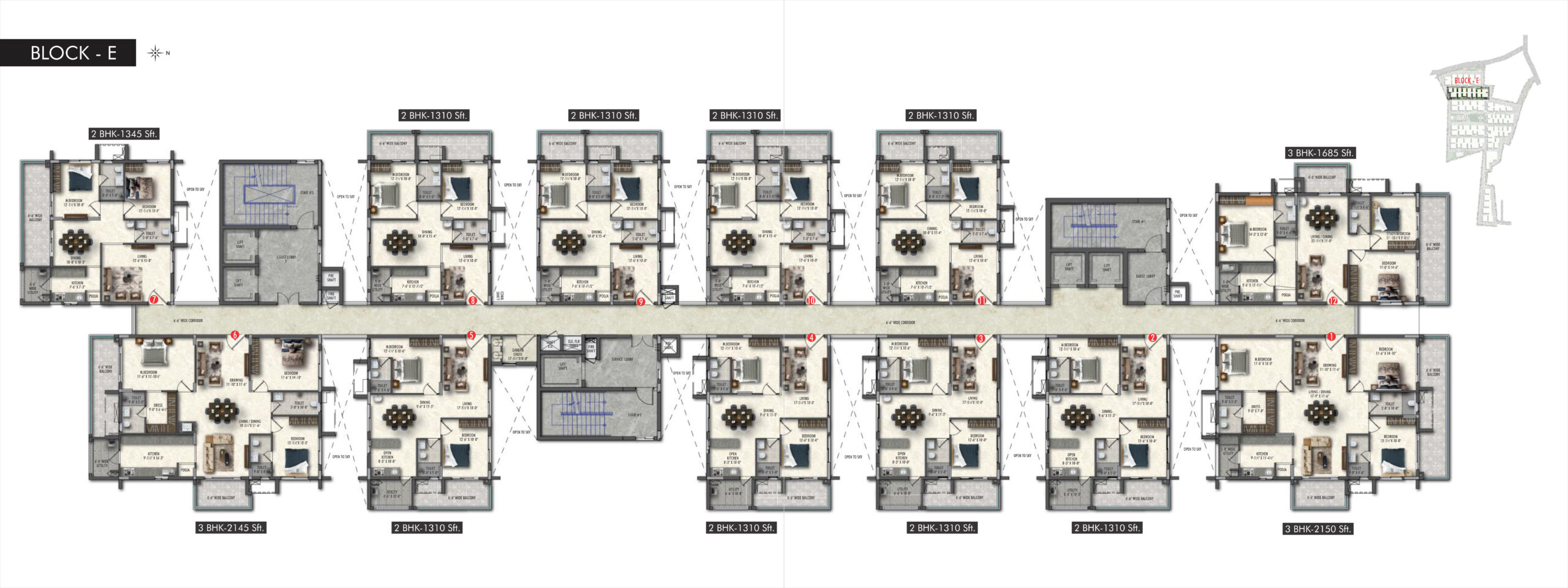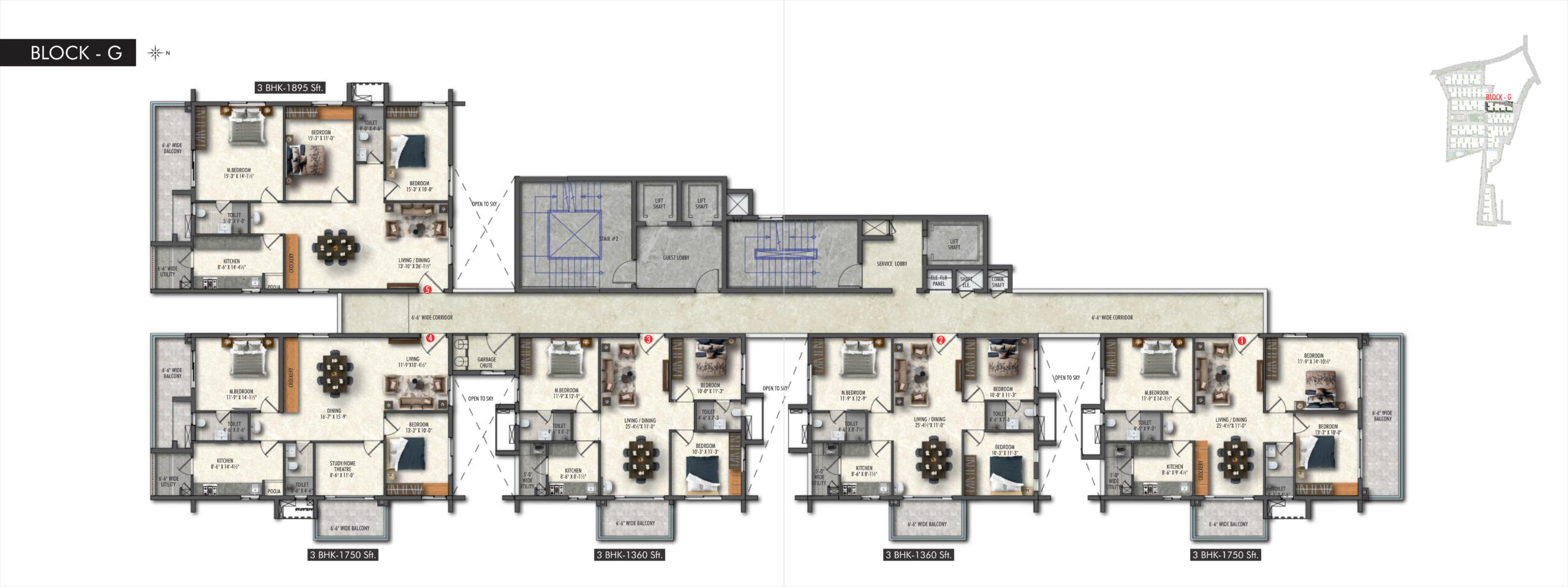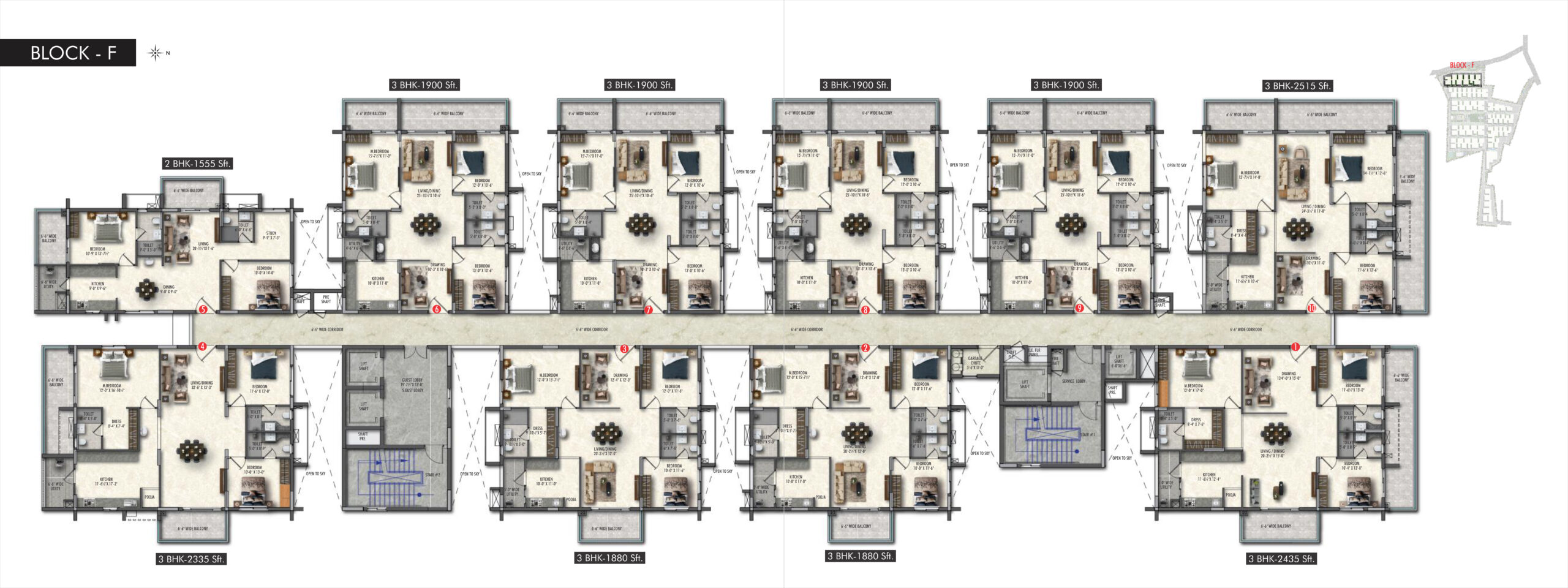 Greenspace Celestial, Kokapet offers well-designed 2 & 3 BHK apartments with spacious layouts. The flat sizes typically range from around 1310 sq.ft to 2615 sq.ft, catering to both mid-size and larger families.