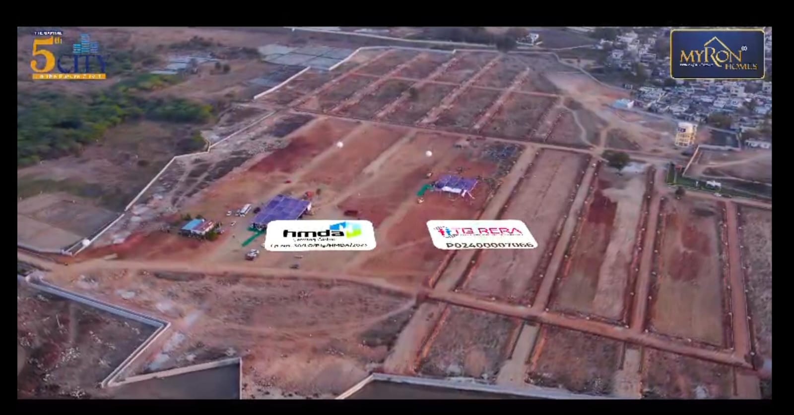 Myron’s 5th City is an HMDA and RERA-approved premium villa plot project located on a picturesque landscape of 32.6 acres. It offers 403 plots with clear titles that range in size from 150 to 712 square yards. The Vastu-approved layout includes all the conveniences required for a comfortable and secure life.
